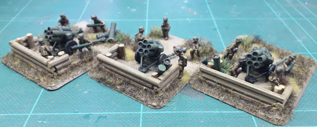 Adding in the 150mm Rocket Launcher Battery provides not only a smoke bombardment, which is just as handy when playing defencively as attacking plus a serious anti-infantry/counter battery capability where I can maximise the Salvo templates usefulness as I wont be advancing on the enemy too much I wont need to worry overly much about the increased Danger Close distance. This brings me to 58 points.