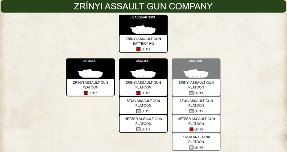 The final platoon option in the Company has plenty of choices and looking at the models I had left, a platoon of 3 Hetzer’s was the obvious choice afterall I want to use all my models if I can. With my Command Card I had spent 51 points. A note to self, buy 2 more Hetzer/Marder kits, why you ask? Because you can have a platoon of 5 which will make the Formation stronger overall. This Formation is highly flexible and would make a decent basis for an attacking or defending force as my StuG’s are built more around defensive strategy I’ll tailor these to principally attack for that I need something powerful to lead my Force forward or at least try and worry my opponent with.