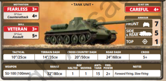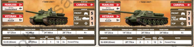 In the formation you get a choice of three different T-34 chassis based tank hunters: the SU-85, SU-85M and the SU-100. They are all Fearless Veteran and hit of 4s, so they only difference is in the armour and the main gun.
