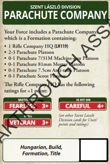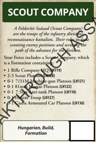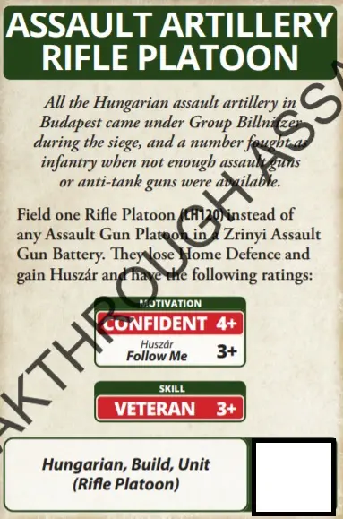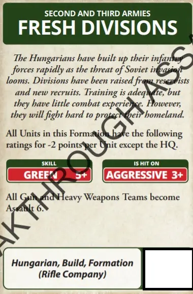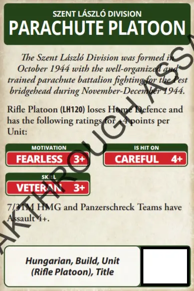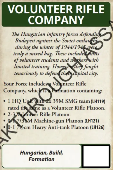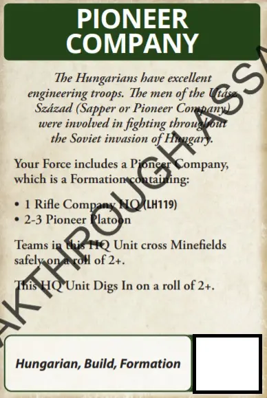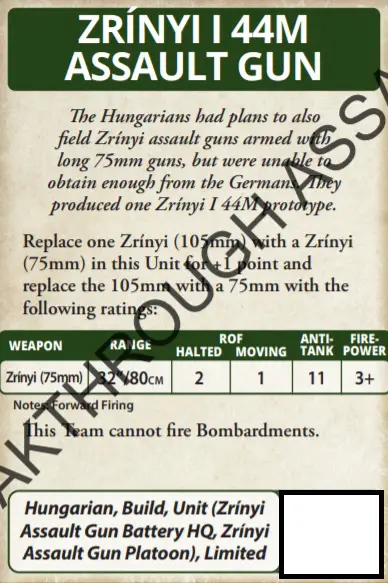 Up until now, allied units and formations had been the preserve of the US & Brits in Late War. Well, be lonely no more; while a Hungarian force may take a German Black Box unit as support or a German formation, you can now do it in reverse thanks to this lovely card. Fancy some Zrinyis in your German Force? Well now you can.