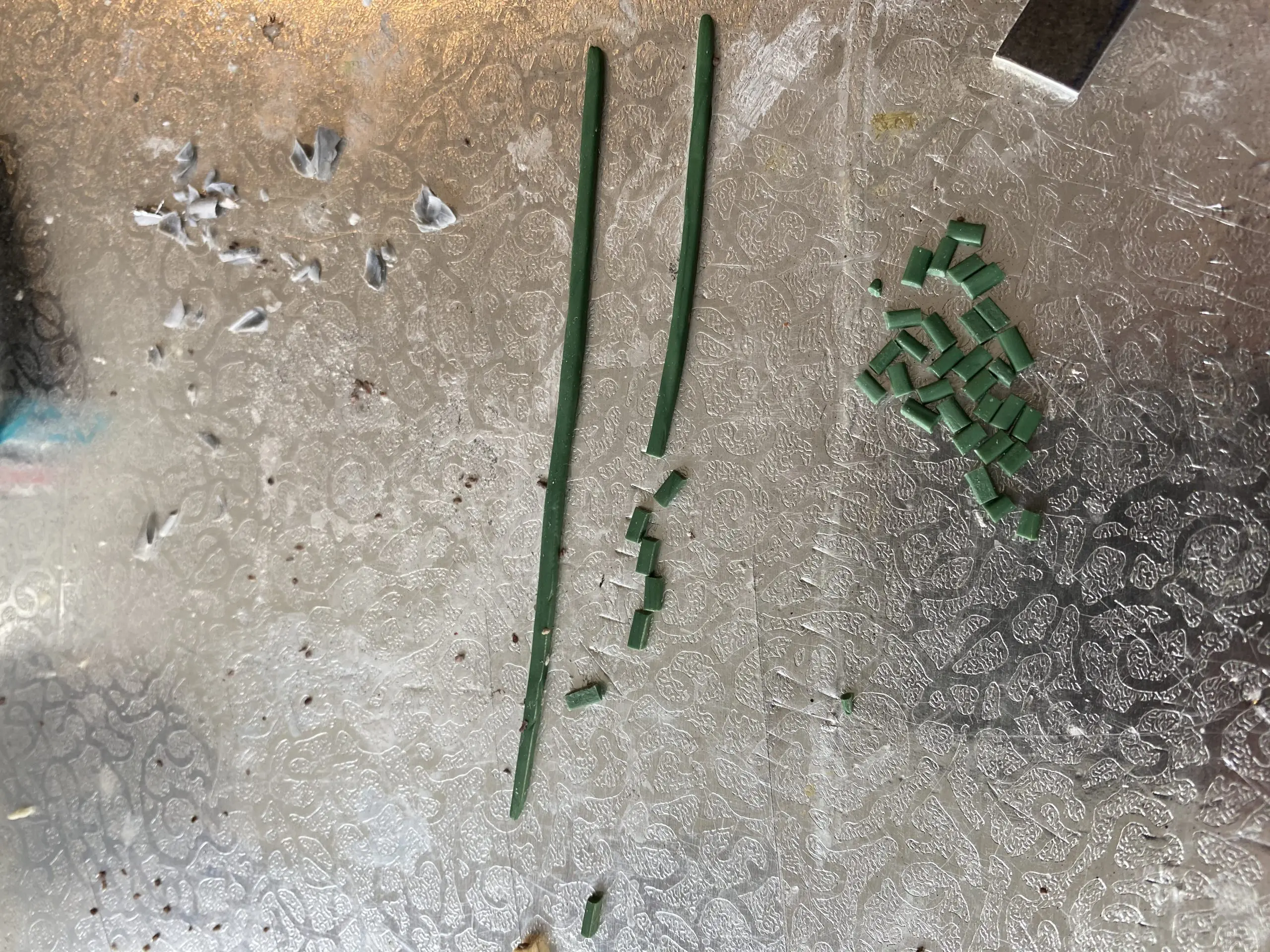 The edges of the clay was now sanded nice and smooth and spatula added around the edge and inside the ruined house.