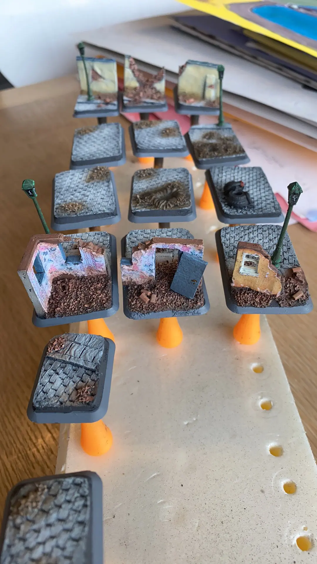 What all this showed me was that if I kept the middle 6 medium stands rather generic I could do the “diorama” bases on the 6 bases on the left and right.