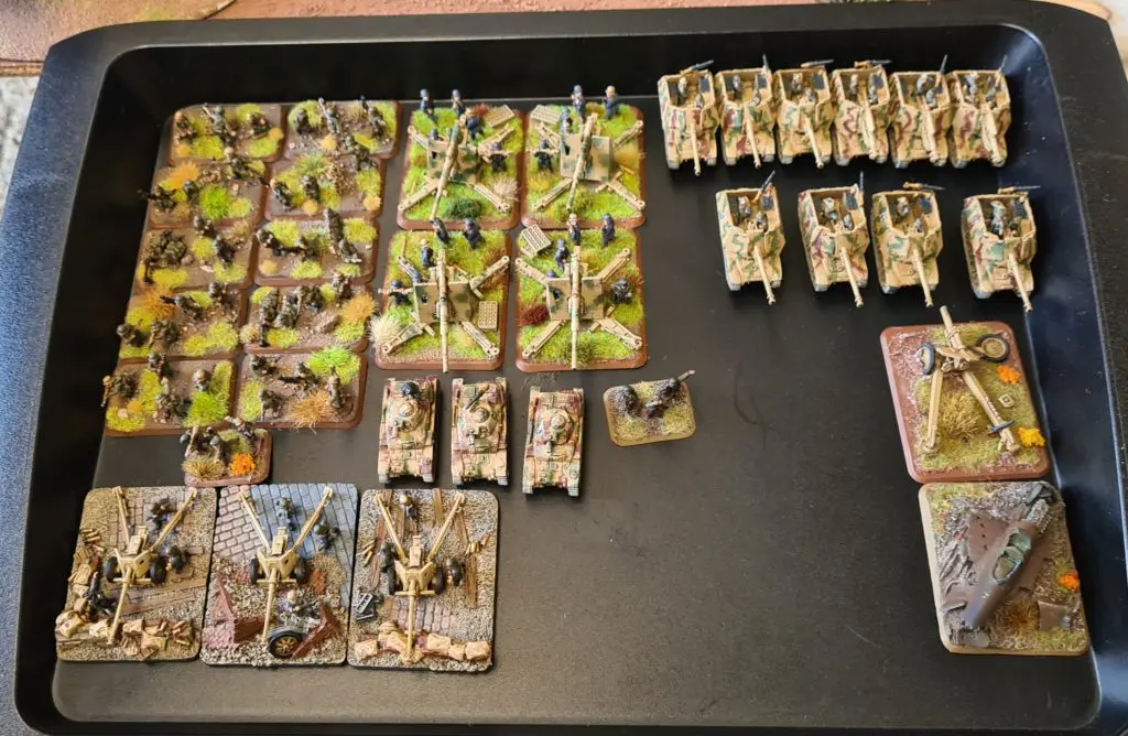 I am really struggling with my Germans at the minute; getting the balance right and their usage in my head. I knew I wanted to use the 21st Beute StuG company, as I’d got it completed over lockdown, but I didn’t appreciate that, because of the force structure, that I would be having to pop almost the entire formation off-board should I have a mission that required reserves. This was quite a mistake as the Beute StuGs really don’t appreciate having to overly move and so they tended to not last very long in the face of aggressive Allied players.