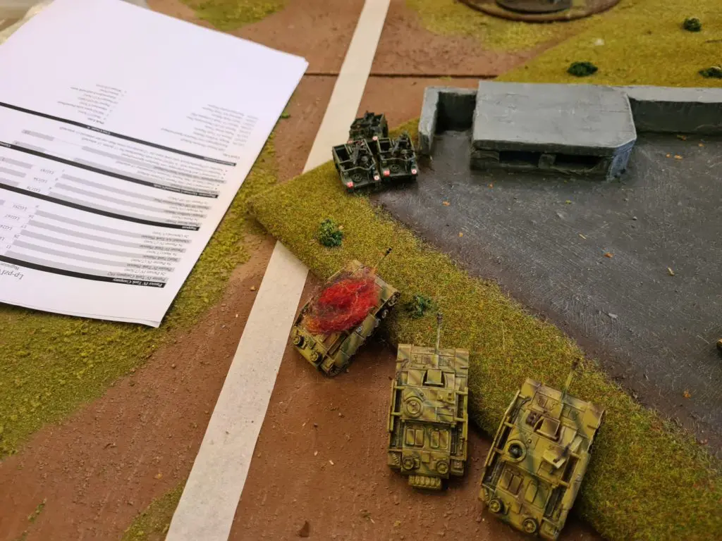 Lessons learned – It’s a good list, just be careful about overextending the support elements. That right flank could have done better with infantry support, freeing up the HQ platoon to put all six of the 70s on the right flank.