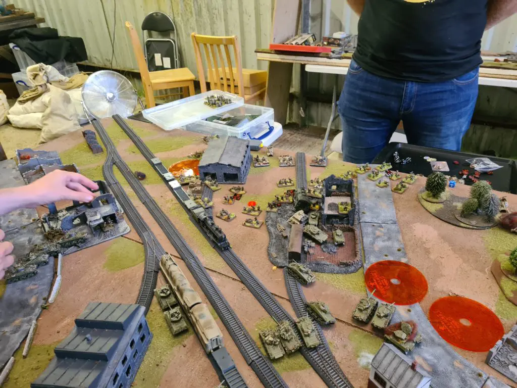 Round one saw me pitted against our gracious host, Mike ‘The Schedule’ Everest with two newly painted armies on his beautiful ‘Trains of War’ board. Both attacking, we rolled Free-For-All, which suited me fine as it was simple enough to not get in the way of my first ever game with this list!