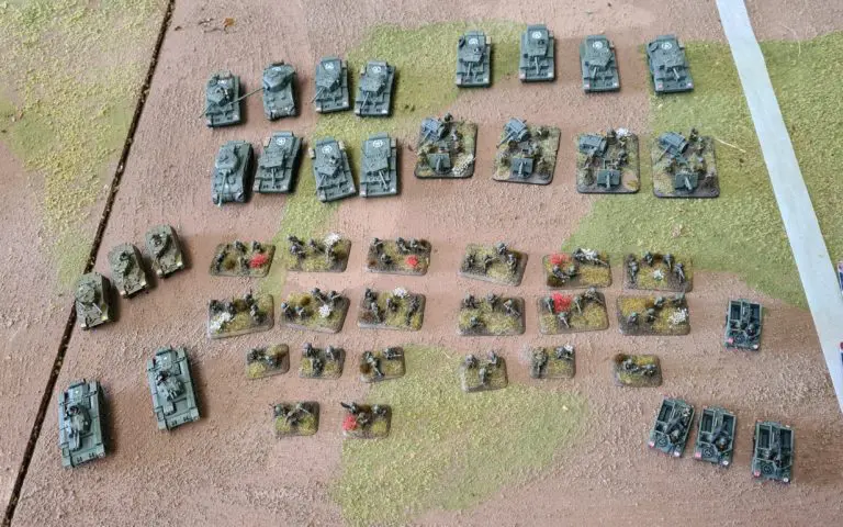 Lessons learned – It’s a good list, just be careful about overextending the support elements. That right flank could have done better with infantry support, freeing up the HQ platoon to put all six of the 70s on the right flank.