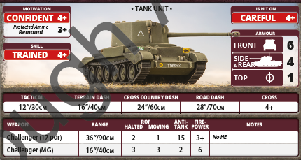 The HQ is the normal mix of 75mm and 95mm Cromwells whilst the troops themselves can be one of two types – one to three Cromwell with one to two Challengers or Cromwell with one to two Firefly.