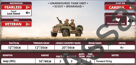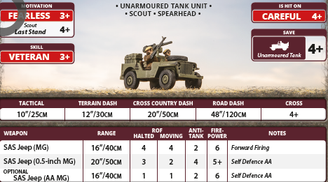 For recce, the Daimlers for the Armoured Car squadrons are joi8ned by SAS Jeeps.  These guys were racing ahead of 11th armoured division in the advance on the Baltics.  They provide a relatively cheap Fearless Veteran scout/spearhead unit though they get pricey once you start mounting more and more MG and armour on them!  Sadly there seems to be no command card for using a formation of them.