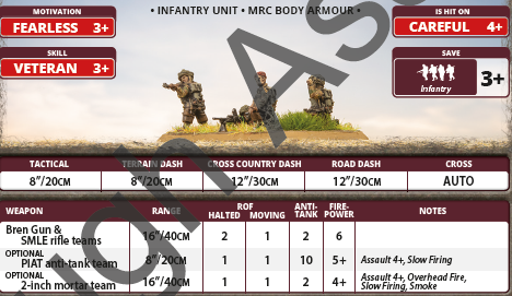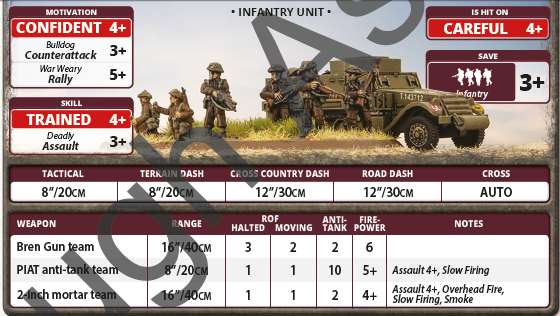 This is represented by allowing the “Close Assault” rule, allowing infantry to disembark as part of the charge into combat.  The Rams themselves sit back and provide MG fire as they are reluctant and have a 6+ counter attack.  The Close Assault rule gives a relatively handy way of mitigating the reduced rally of British infantry by saving them from being pinned until the defensive fire, at least.