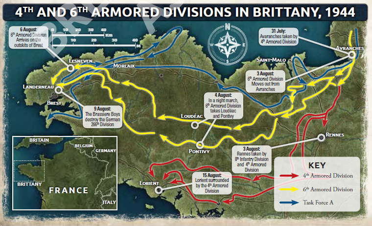 Whilst famous for storming Omaha beach, the 29th didn’t end their war on the beach. They pushed inland and headed to Brittany, bringing the pioneer skills and equipment they had used to good effect breaching the Atlantic Wall to crack the fortress city, Brest.  They relieved the “Super Sixth” armored division who had been containing the Germans whilst the doughboys caught up.