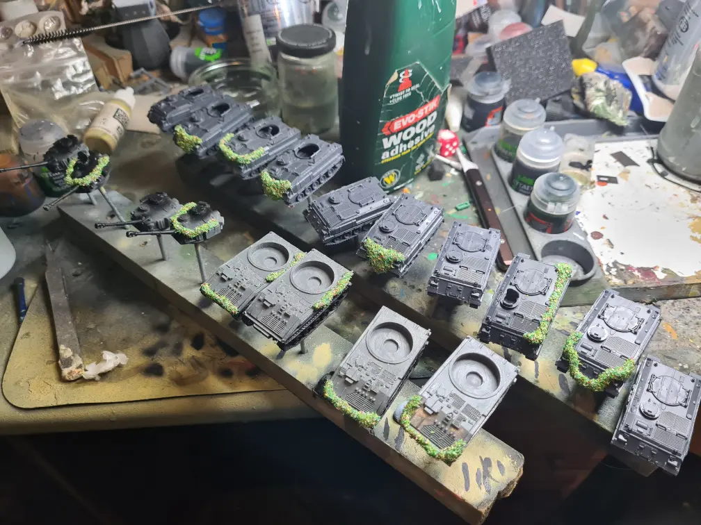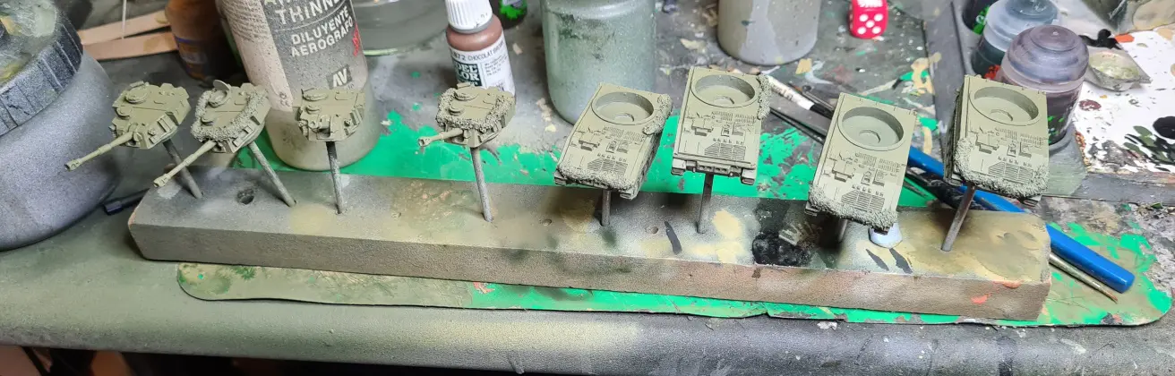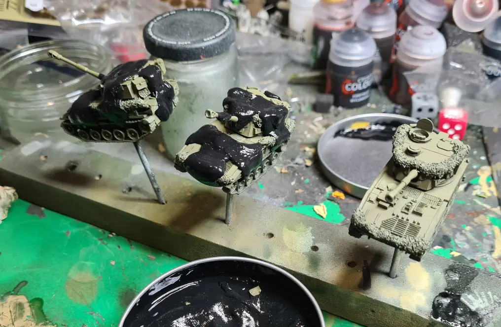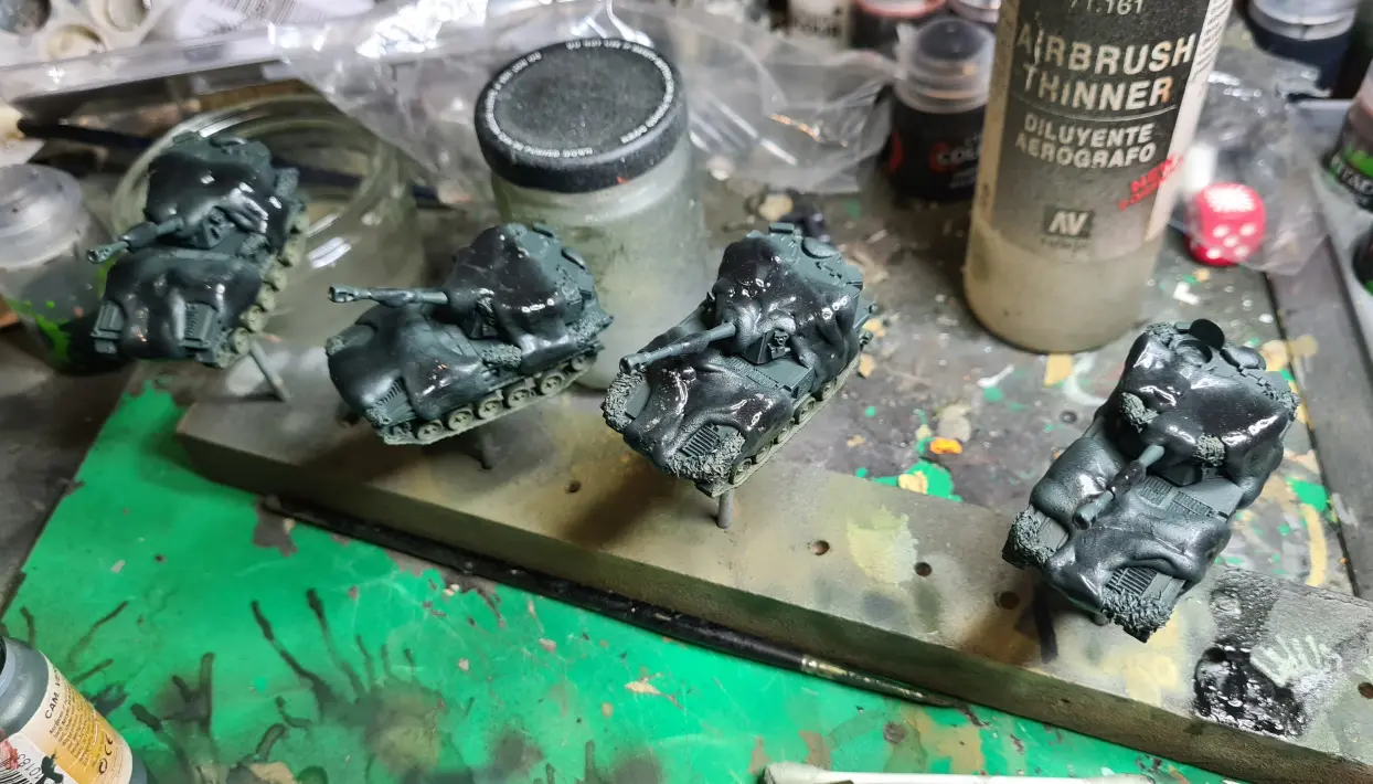 I split the painting into two blocks; the crew and AA MG were the first block, the AFV themselves were the second.