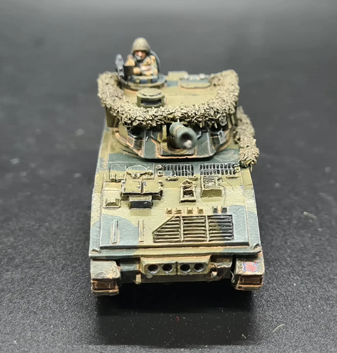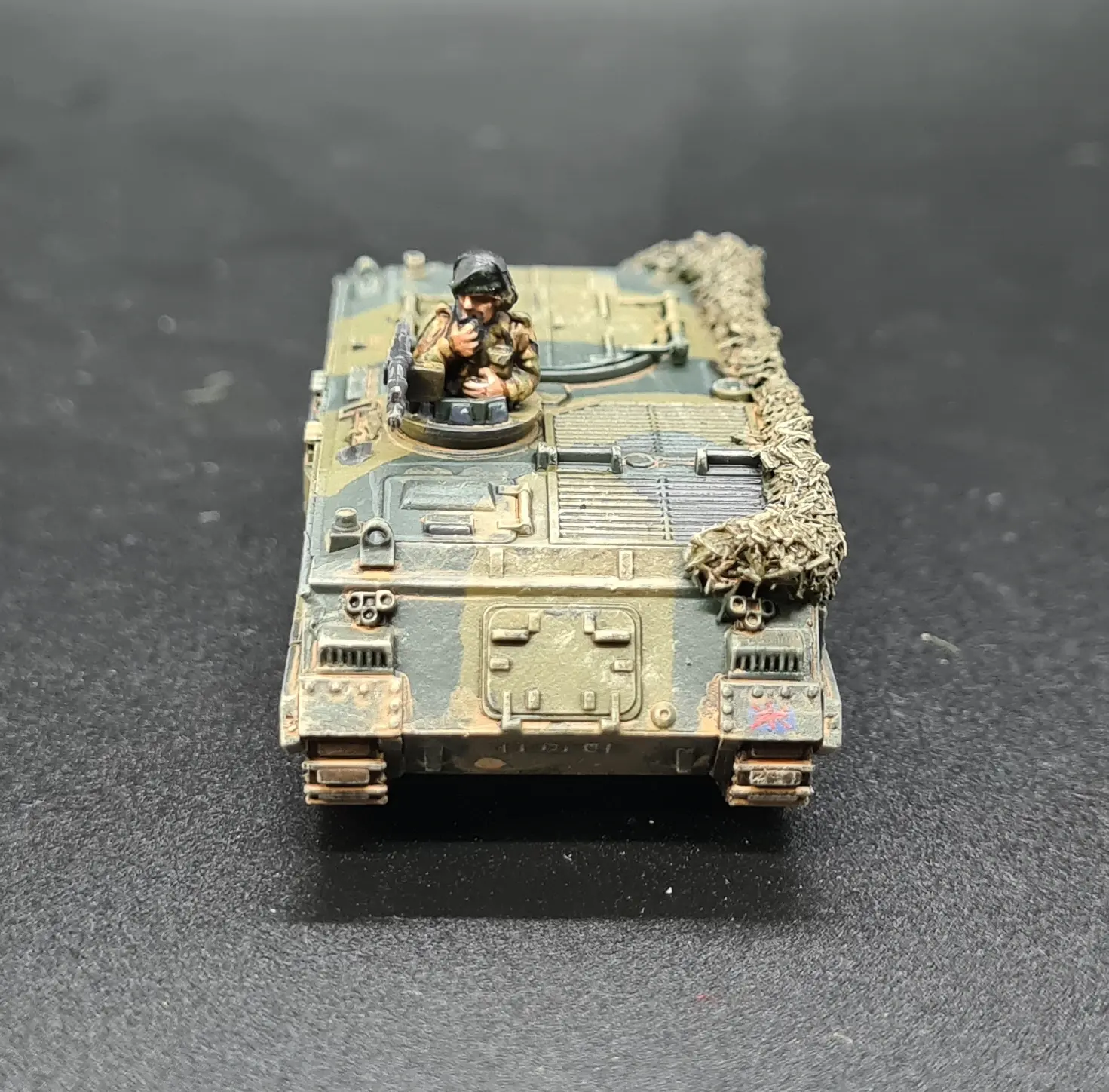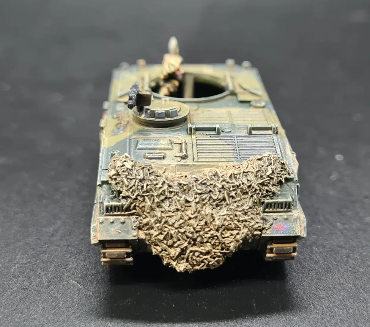 Compared to the Desert Brits, the 1985 Brits have relatively lightly loaded vehicles to reflect that they are operating on much shorter supply lines in a defensive fight.  As such, the only real prep required was to add copious amounts of rolled and semi-deployed camo netting.  For this, I followed the methodology I have been using throughout the project, as described here.