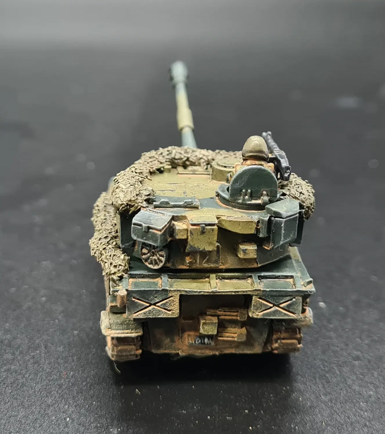 The other change was on the camo netting.  rather than basing the netting with VMC Olive Drab and working up through VMC Brown Violet to VMC Green Brown via drybrushing, I instead based in the VMC Brown Violet, applied a broad wash of Citadel Agrax Earthsade then dry brushed on Brown Violet and Green Brown which achieved a better effect, quicker.