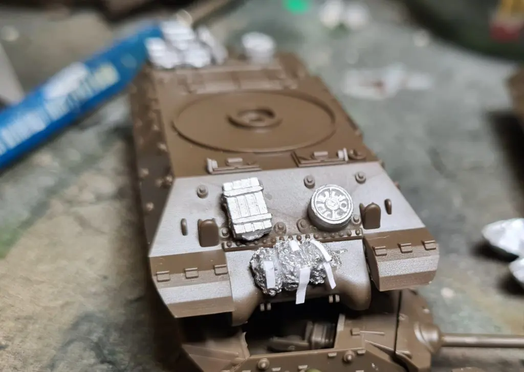 I also did a similar process to the stowed camo nets, gluing small strips onto the Skytrex metal moulded camo nets.