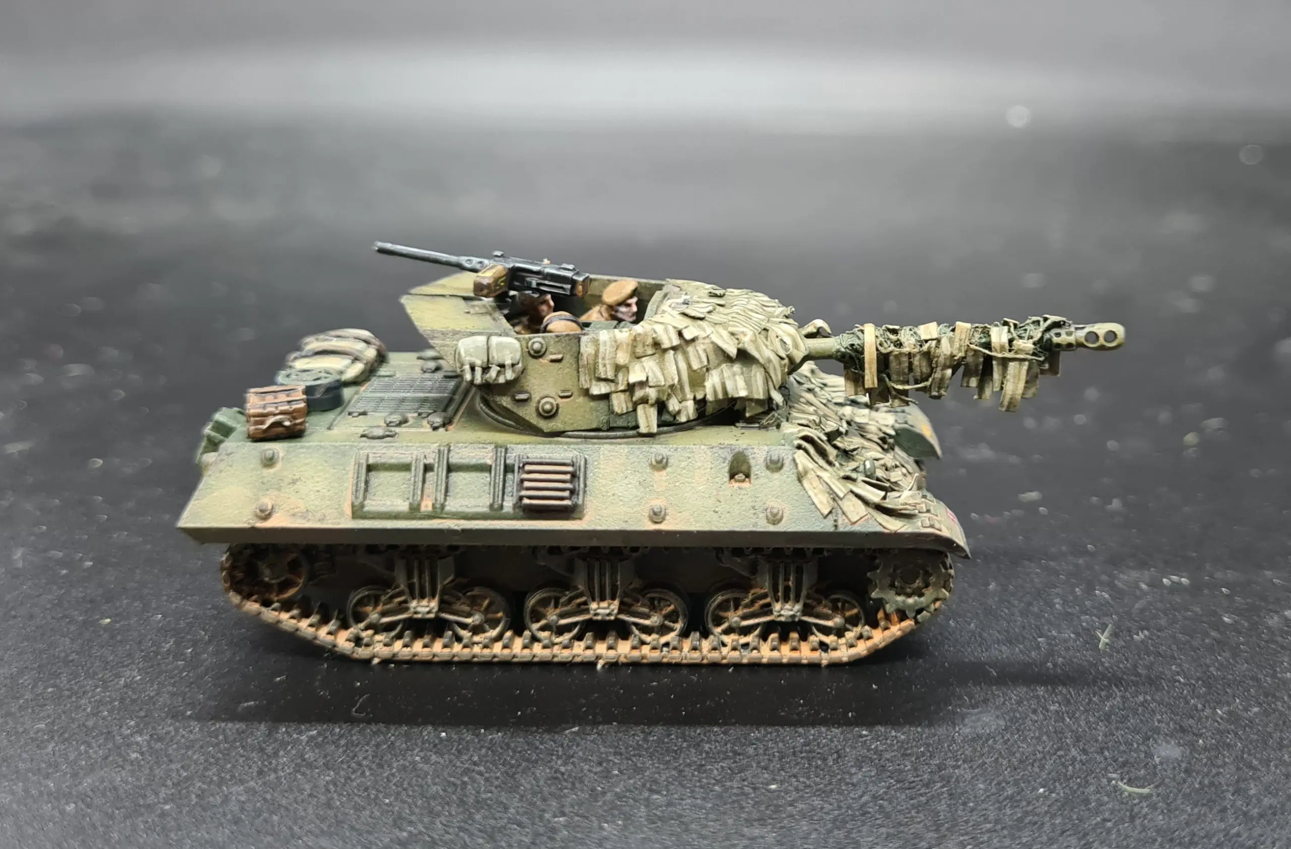 I had taken the M10s from a US starter I haven’t gotten around to yet so the first issue to deal with was a lack of British crews. Thankfully, you don’t play Flames of war for 15 years without building up a surplus of tank crew figures! The only real issue was that the tank crew were all wearing berets. I expect that the M10 crews, in an open topped metal box, would likely have worn a helmet of some sort (likely either the UK or US AFV helmet) in combat.