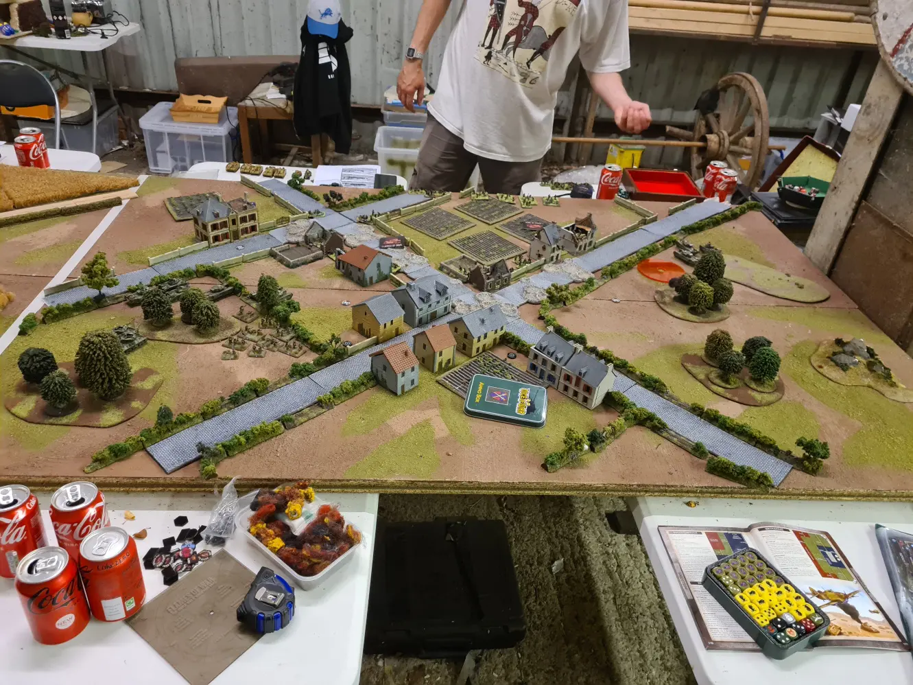 Friend of the blog and podcast, Mike, has been hosting some games of Flames of War in his barn and an offshoot of that was doing an evening of smaller point games to get the rookies (to v4 at least) up to speed. Duncan and I headed over to help run them through their paces.