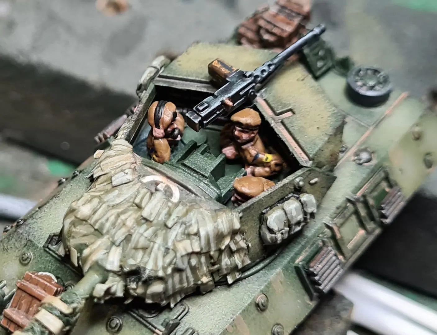 The Buralp camo was painted as on the Churchills. As mentioned then, it really should be three colours (khaki, green and brown) but the multi-colour test piece didn’t work for me.