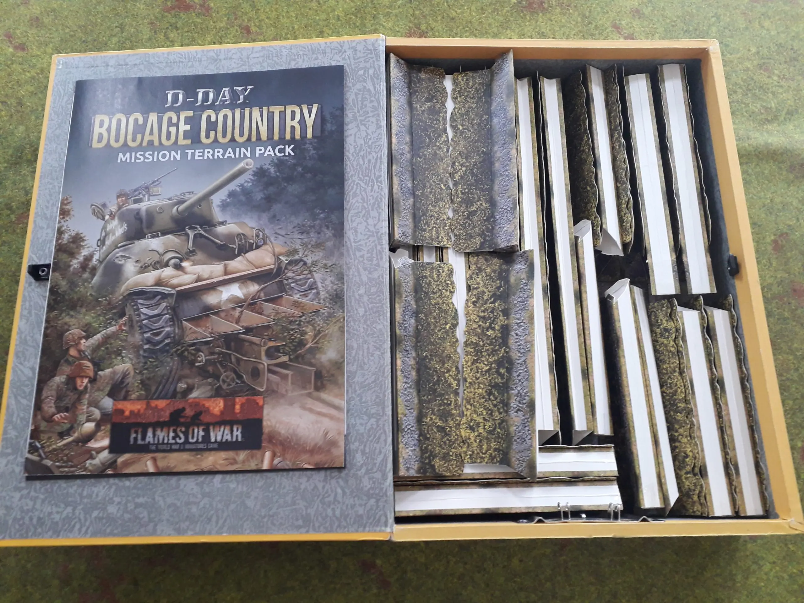 Now, first up, don’t be fooled by what the text in flyer pack says; this does need some assembly, as the boccage comes flat pack style and needs to be folded up to make it stand up ready for use. That aside the individual pieces are well printed on good quality card and come with all the folds ready creased and, unlike the D-Day Mission terrain pack, theses are proper 3D pieces of terrain.