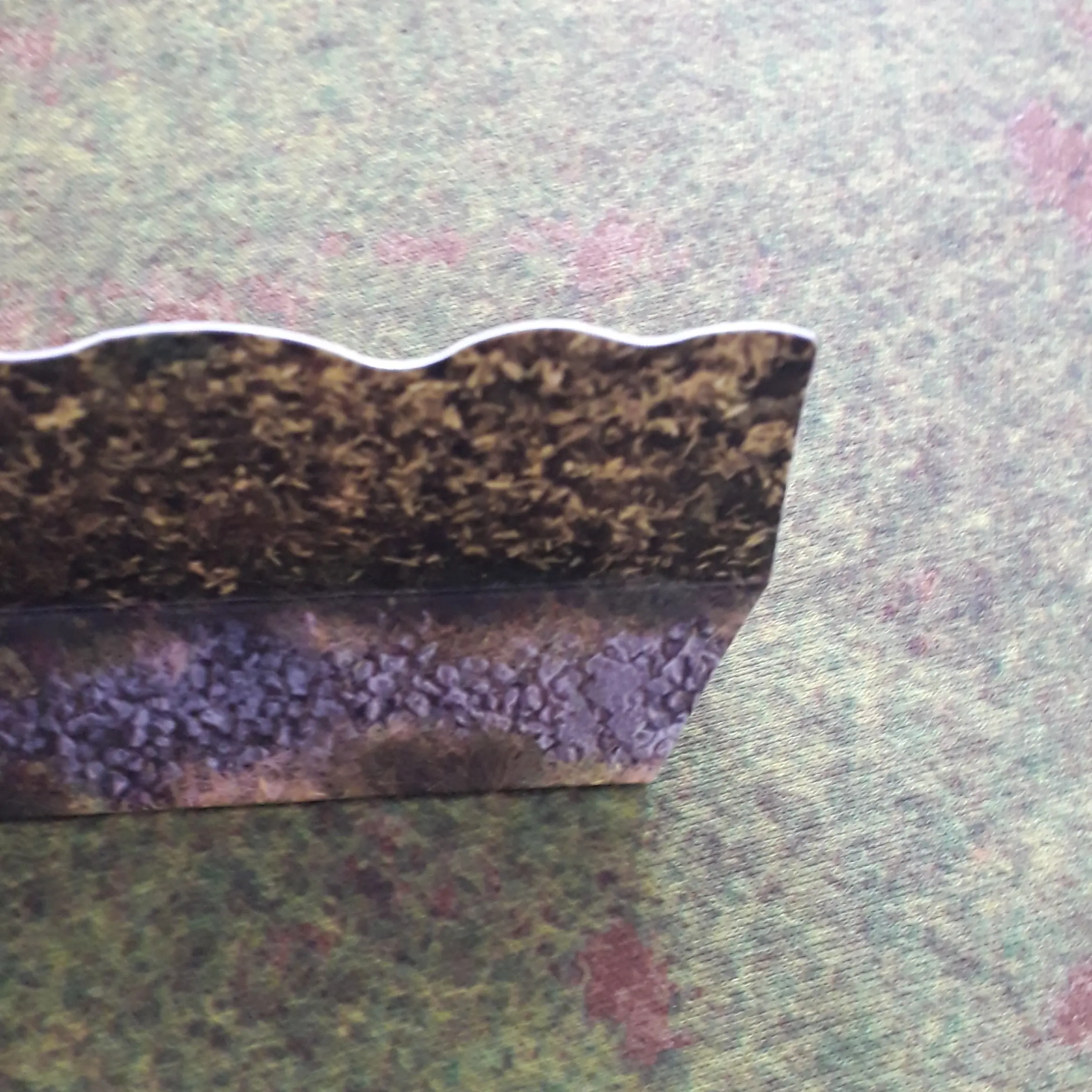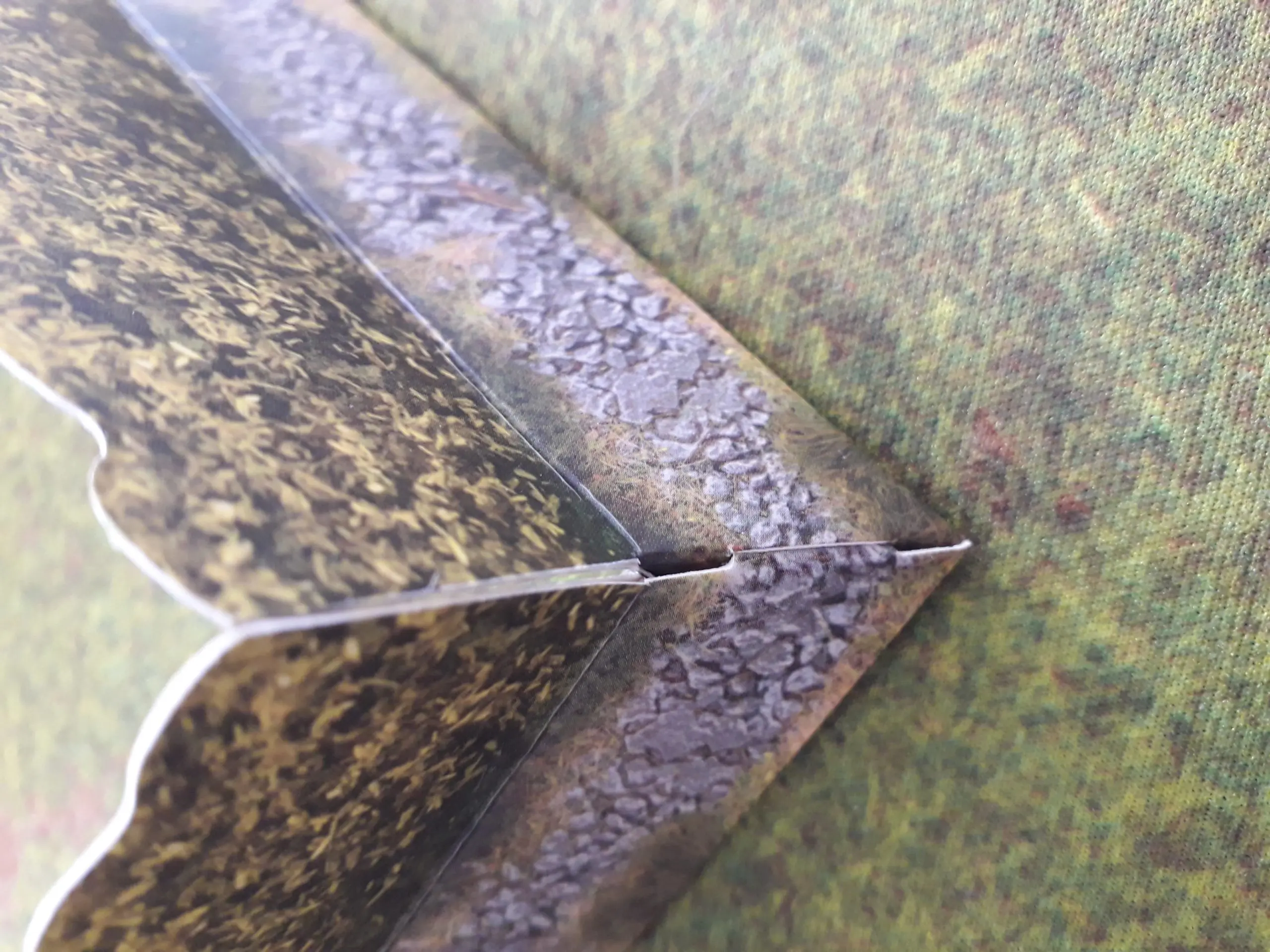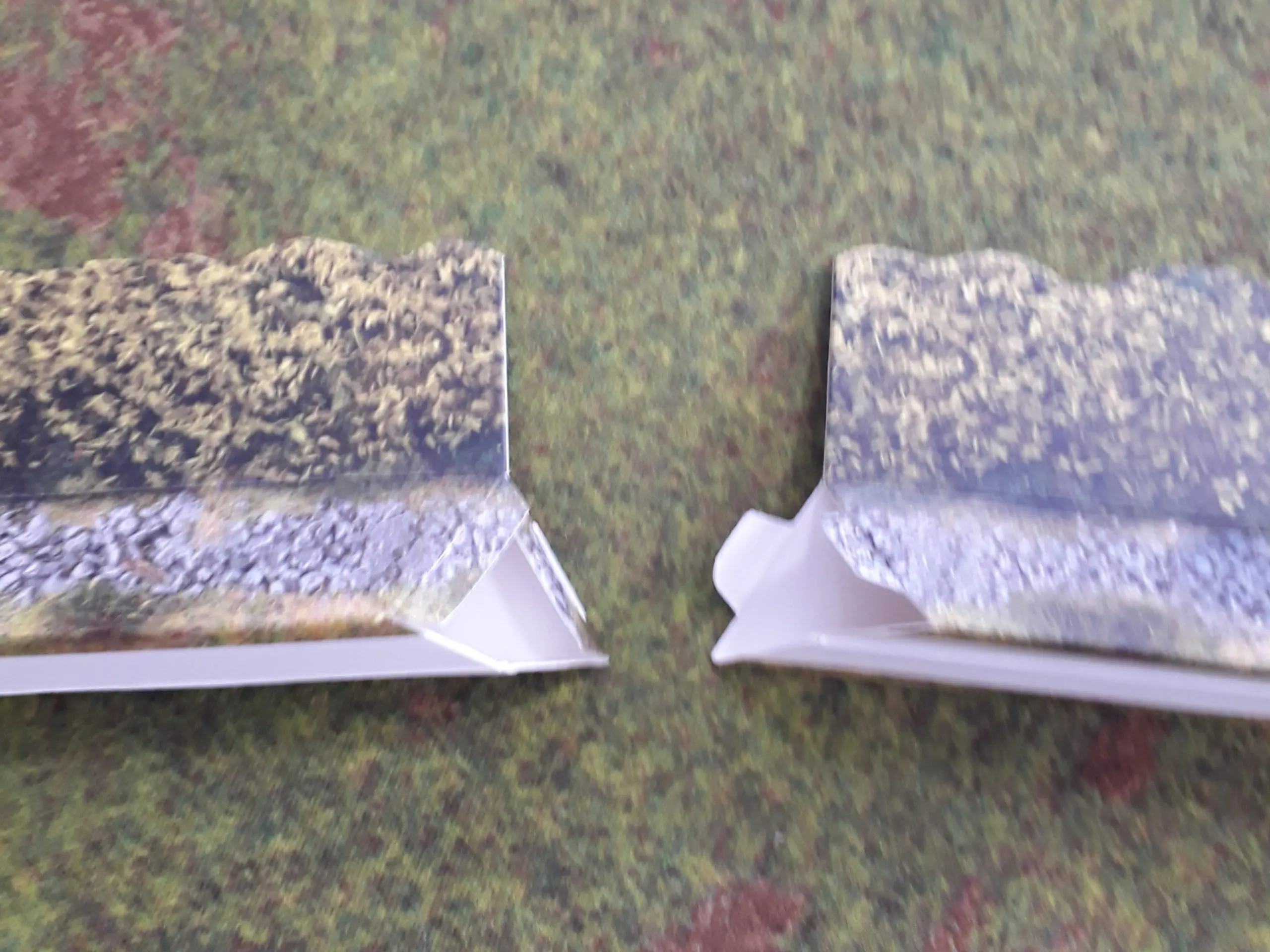 You get a mix of types of piece; either 6″ (15cm) or 12″ (30cm) lengths with either two flat ends or a mix of flat and mitred ends. The mitred ends allow you to creat T-junctions in your bocage field boundaries. You also get corner pieces made up of two shorter sections held together with connecting tabs. These need a little care in inserting but not overly so as the card is thick enough to withstand you doing this a few times, but you might want to consider permanently fixing them together.