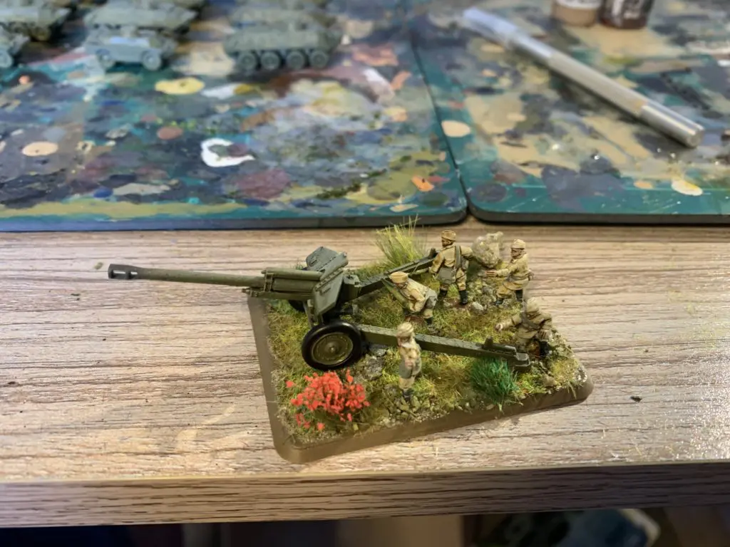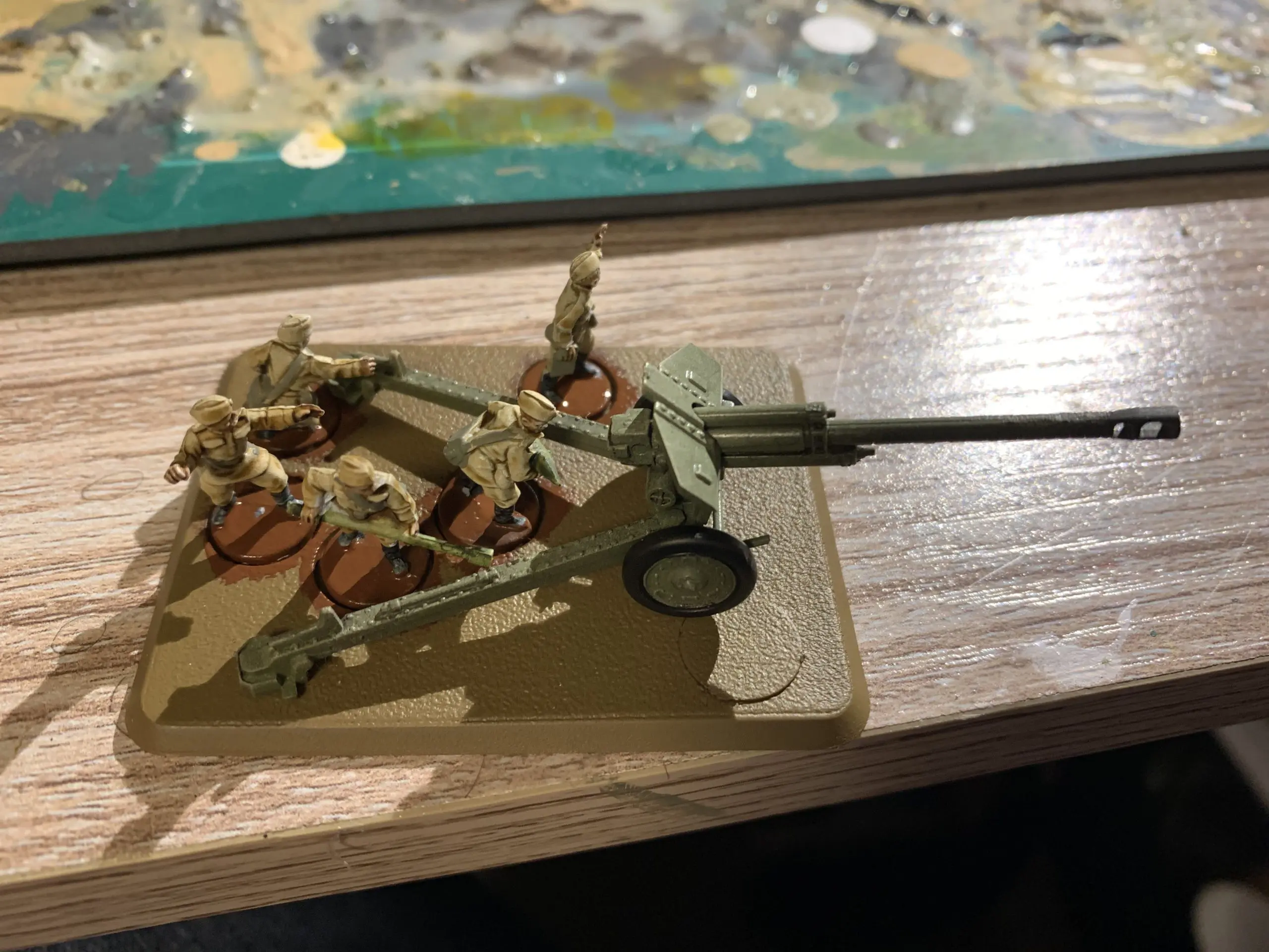 If you are wondering why one model is unpainted, that’s because he is carrying the 122mm shell so isn’t needed. All I have added here is a layer of Vallejo Green Grey on the straps and webbing of the crew.