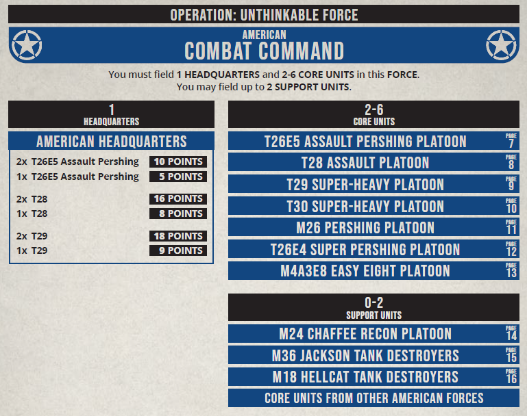 Lastly, we have Commander Abilities. These are bonuses you can buy for your Force Commanders tank and these are a mix of special abilities that are apply to either just the Force Commander or in some cases to nearby Platoons. There work like Command Cards in FoW or the Crew upgrade cards in World of Tanks (WoT) but are limited to 2 per Commander. These can only be applied to the Force Commander Tank even if they affect Platoons you need to be near them (i.e. in Command Distance) to use them in those cases. A subtle change here is that if your Force Commander is forced to change Tank these abilities are lost with their Tank.