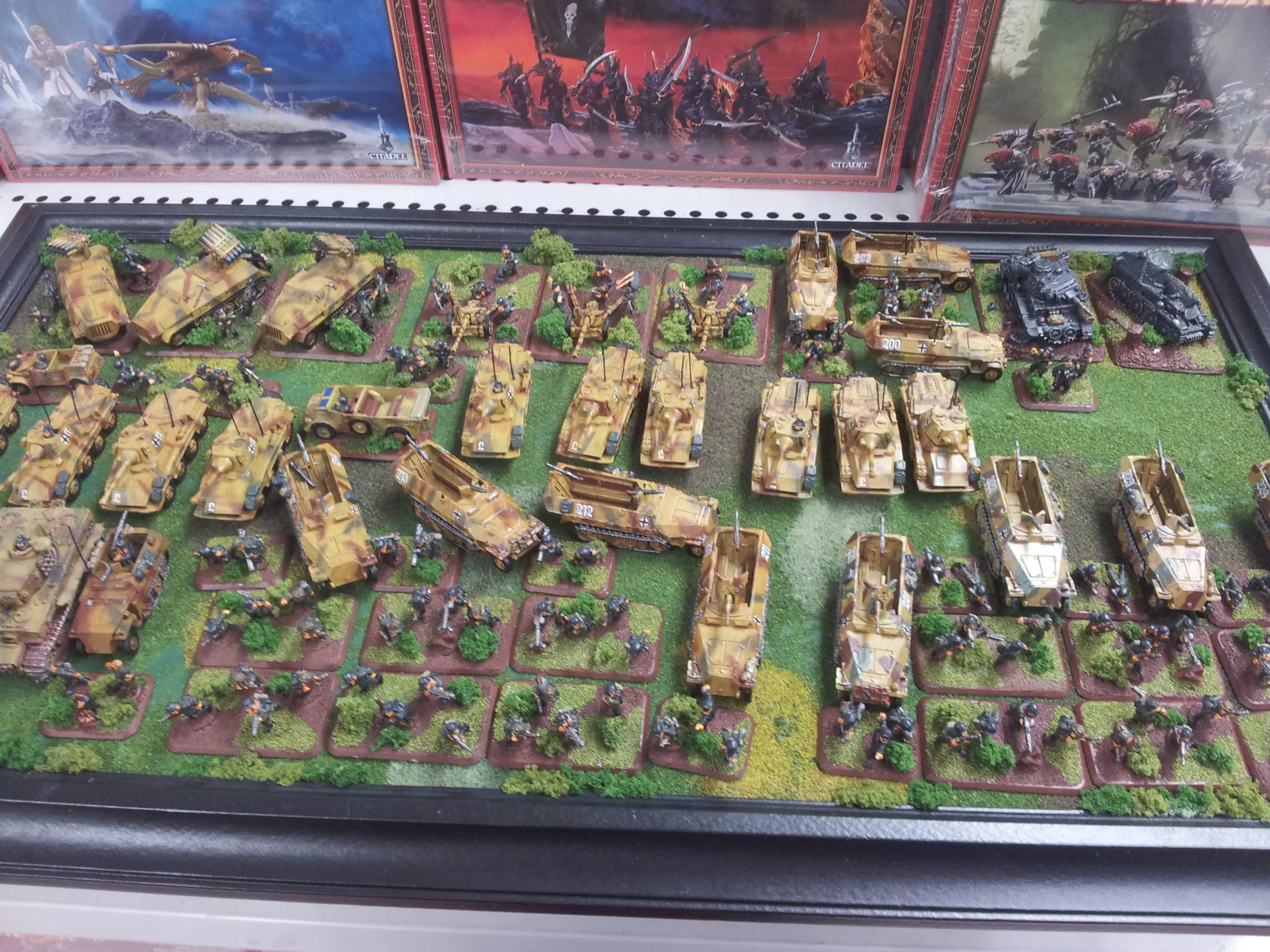 That would be what we used to call a “Mechanized Infantry” Force. It’s an OK army with the minimum required for the Formation (Armored Panzer Grenadier: 2 core Units + HQ) with extra (AAA), supported by artillery (NW41) and tank hunters (Jagdpanzer). The only thing missing is reconnaissance. Otherwise, you have pretty much all you need to play FoW. Not bad for a veteran starter!