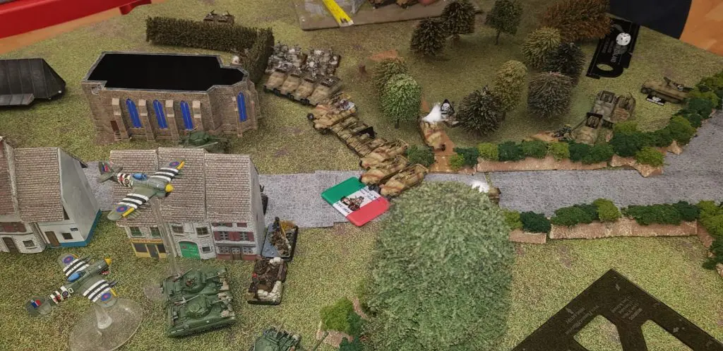 I gave Paolo a difficult choice from the start, with a more lightly defended Objective with Minefields, and a better defended Objective without. None was better or worse, they simply had a different timing and resources commitment. Paolo choose the later, and carefully moved his Infantry, AFV and Crocodiles, backed up by Mortars and sniping Achille. Contrary to the game against Flaviano, I decided to use his carefulness of approach to commit strong from the start by picking up his lighter Recce and WASP, and creaming lightly his Infantry. This made the British advance slow down, and while I was obviously losing troops in my 1st line, their firepower blown the light British vehicles apart, cutting the main pushing force (Infantry and Churchill) from their supports. This allowed me to have the Crocodiles not only having to focus on paving the road to Infantry, but also watch their flanks as my German start to encircle them slowly and purposefully, putting them in a corner where they had to actually play much faster to rack up turns of shooting to make the difference. In the meantime, my 3rd line calmy came into position, ready to jump in the cauldron if need be. It wasn’t necessary as even the mighty Churchill fell to the determination, firepower and maneuvers of the German troops, who secured their Objectives.