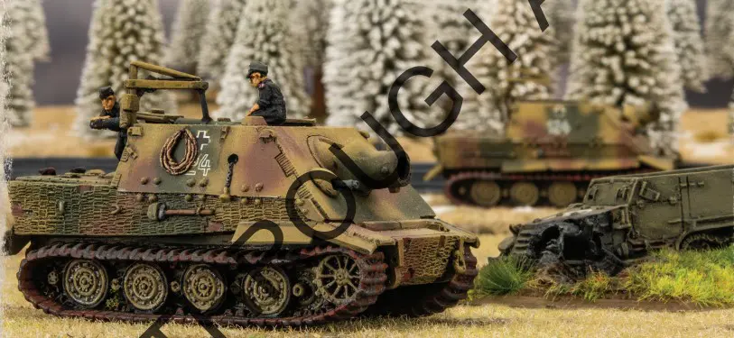 Another new model for the Bulge release, but a one trick expensive pony. The key thing is a AT17 gun. I am always dubious about very high AT, you pay through the nose for it but I find beyond AT14 you get diminished returns except vs very specific targets (IS2, Super Pershing). The Jagpanther comes in at a whopping 37pts for 3 hulls, thats 4pts more than the early Heer Panthers. So for 4pts you gain 3AT but lose the around stats (ie poor assault) and gain forward firing. Perhaps in itself not a terrible trade off but the Heer Panther is/was woefully overcosted for its utility. Perhaps better to compare to 3 x SS Tiger 1s. You can 3 AT over the Tiger but at a cost of 3 less SA, 1 less TA, a turret (ie no forward firing), 2+ motivation and a 3+ assault. When you look at it in that light, +3AT just isn’t a great investment.