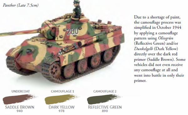 For the Hetzers I think you can play around with combinations of camouflage as well as some vehicles in just plain dunkelgelb. The Colours of War book has some nice camo patterns that come in late 1944 that could give this force some distinctive paint schemes.