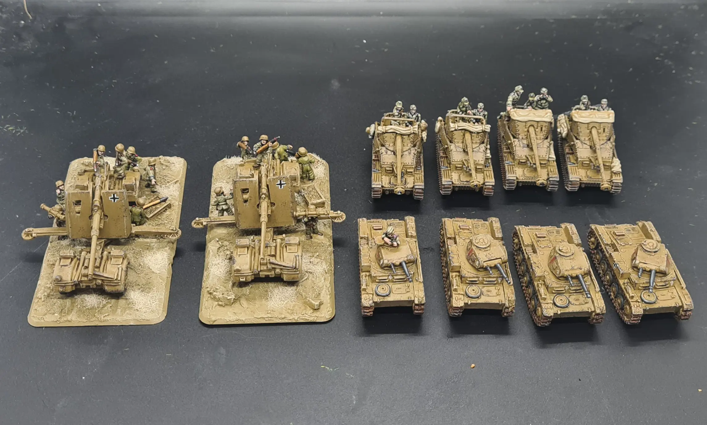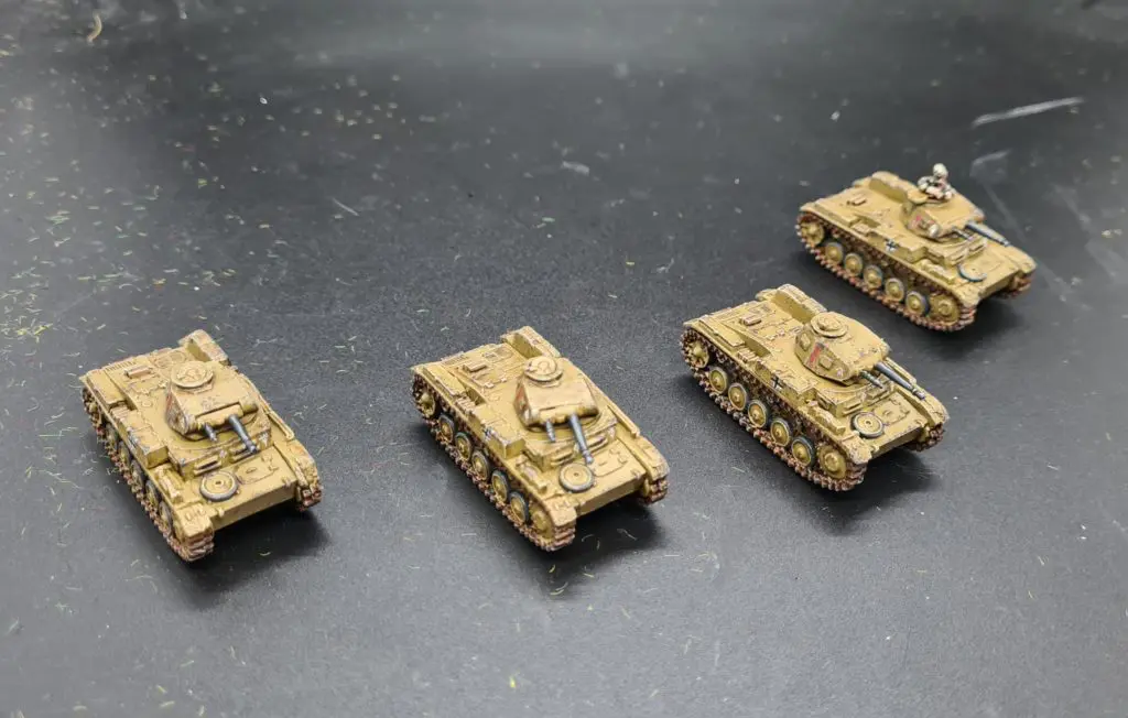 In the first part, I outlined my plans for my 100pt “Gazala-themed” Arikakorps Panzer force.  Now it was time to start painting it.