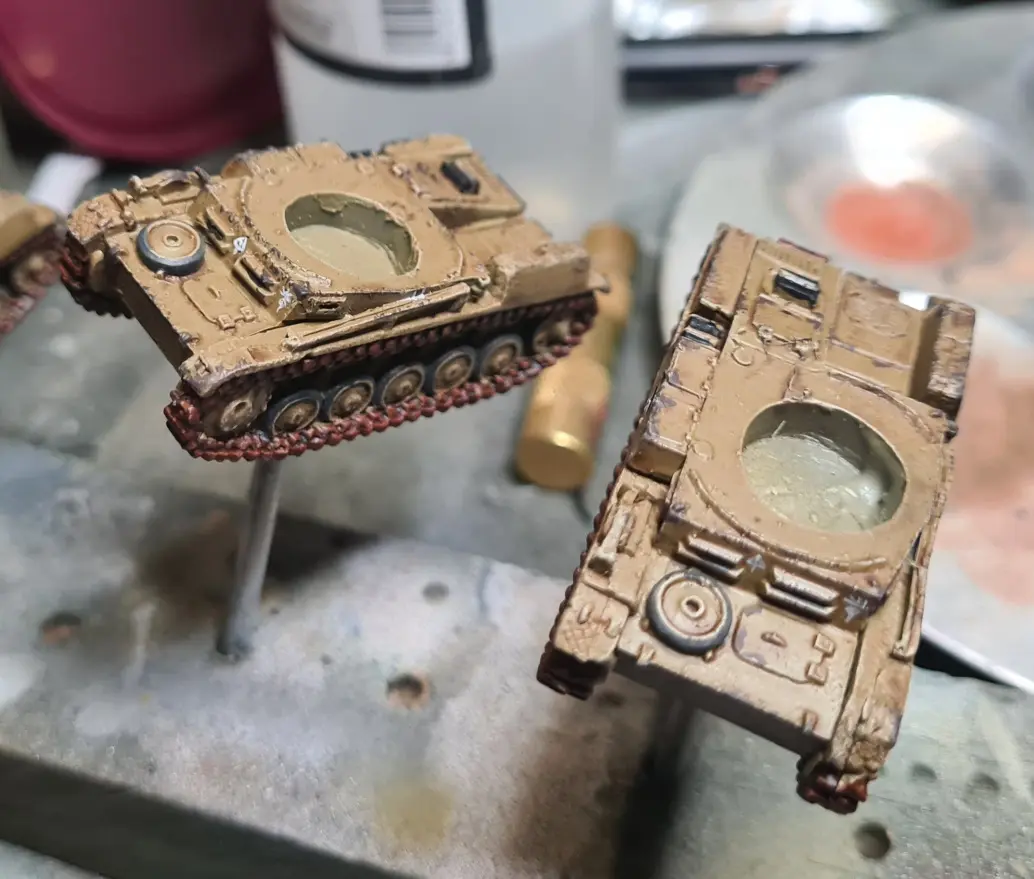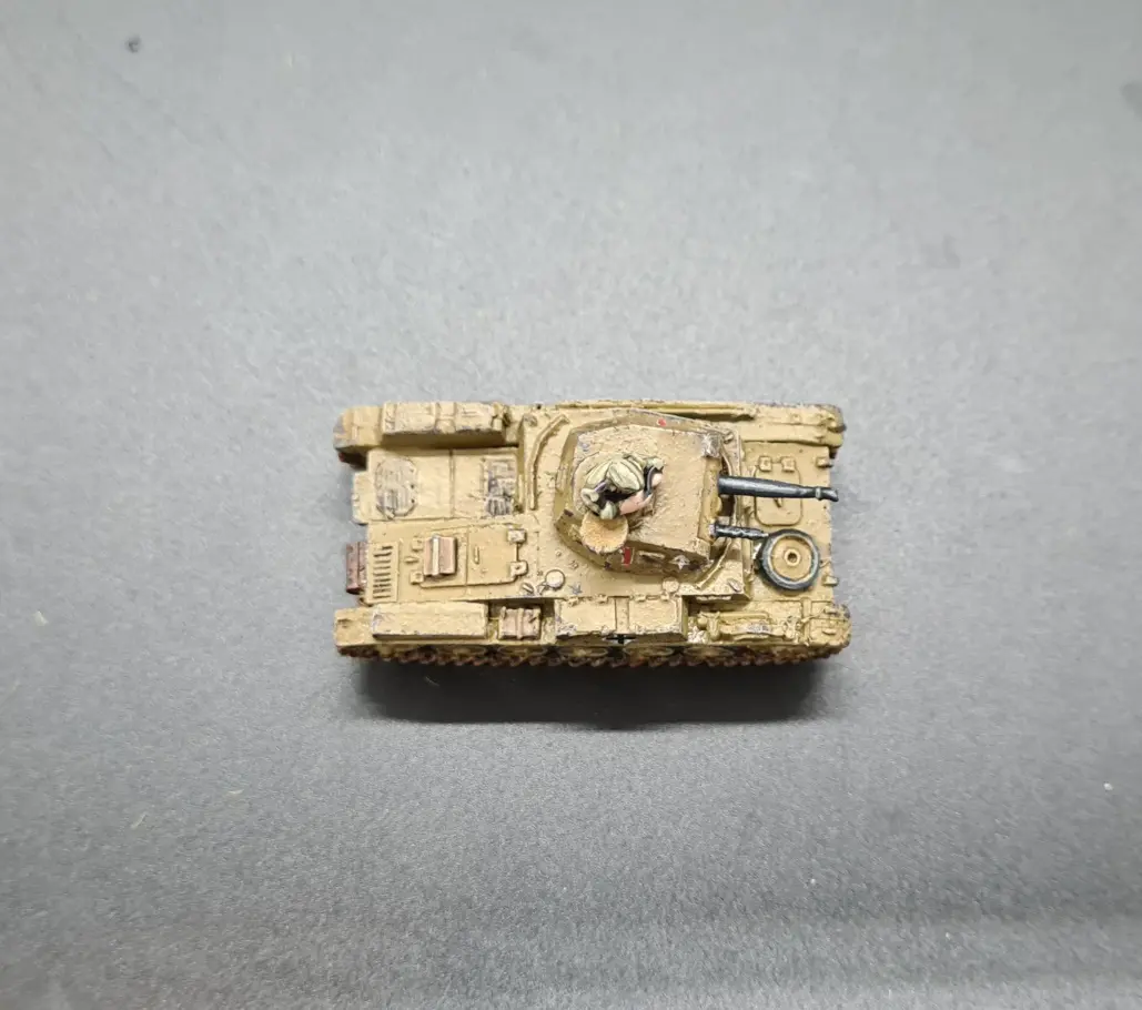 I then gave the model a drybrush of VMC Iraqi Sand, dry brushing from bottom to top on the hull, heavier at the back of the tank and a light drybrush on the top surfaces of the turret and upper hull.  Vallejo Mecha Matt varnish sealed the model.