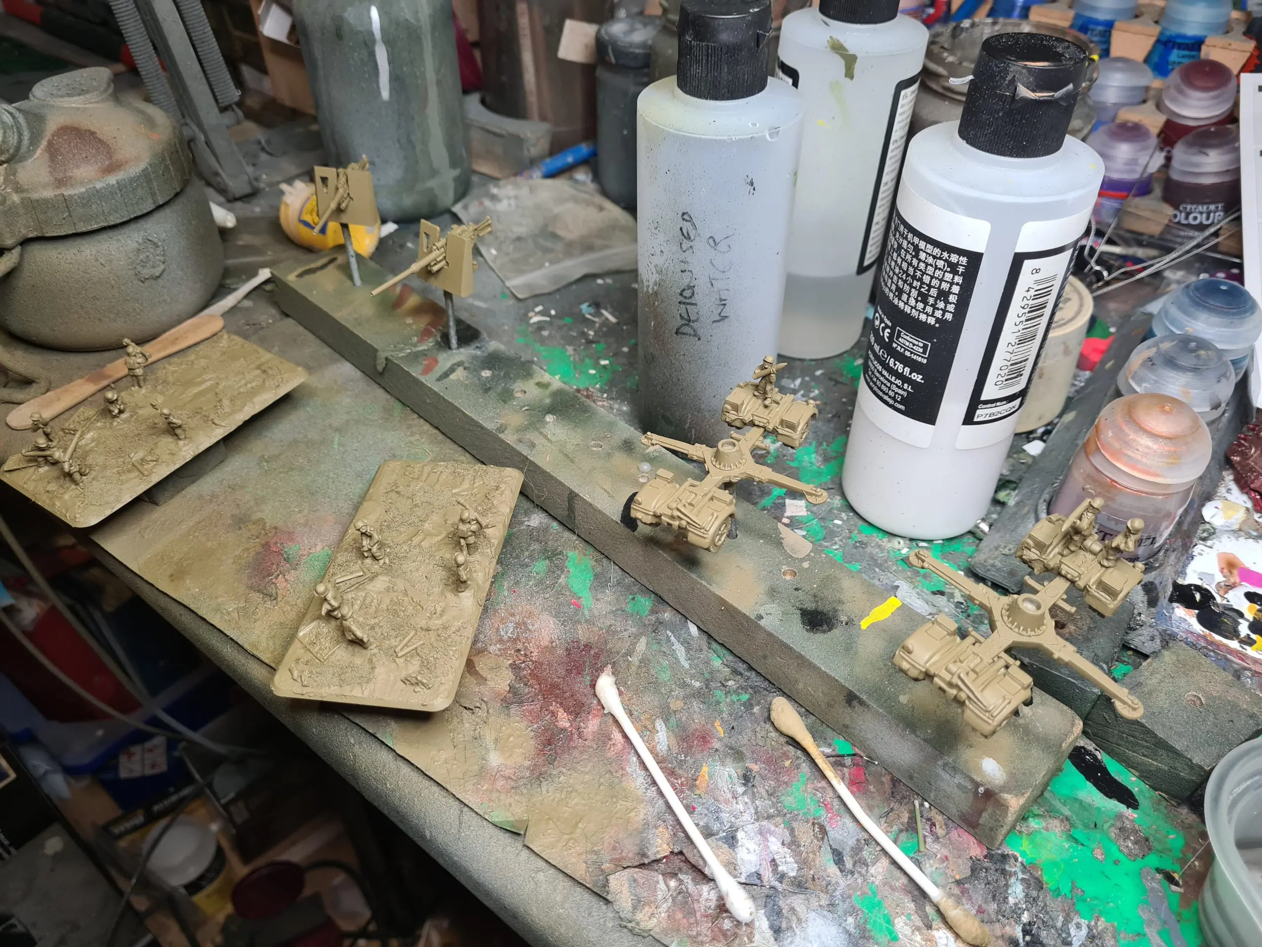 I decided to paint the majority of the Marder and 88 crews, the latter of which should likely be in the yellower Luftwaffe tropical uniform but I decided to ignore that for now, in faded tropical uniforms, with a few fresher uniforms (for replacements) mixed in.