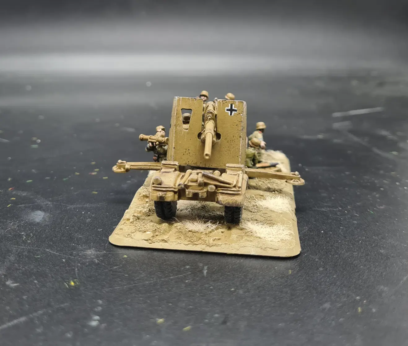 The 88mm had been assembled many moons ago and are the older metal blister version.  the advantage of this is that they come with the wheeled carriages which are placed at each end of the main strut, allowing the 88 to be modelled on the carriage.  The FlaK 36 carriage was designed to be able to withstand the forces of firing, allowing the guns to be fired quickly after being unhitched from the tow.  This could be accomplished with the fold down arms either up or down, but the arms could generally not reach the ground and the carriage could only fired over a very limited arc of fire to prevent the gun from tipping over.