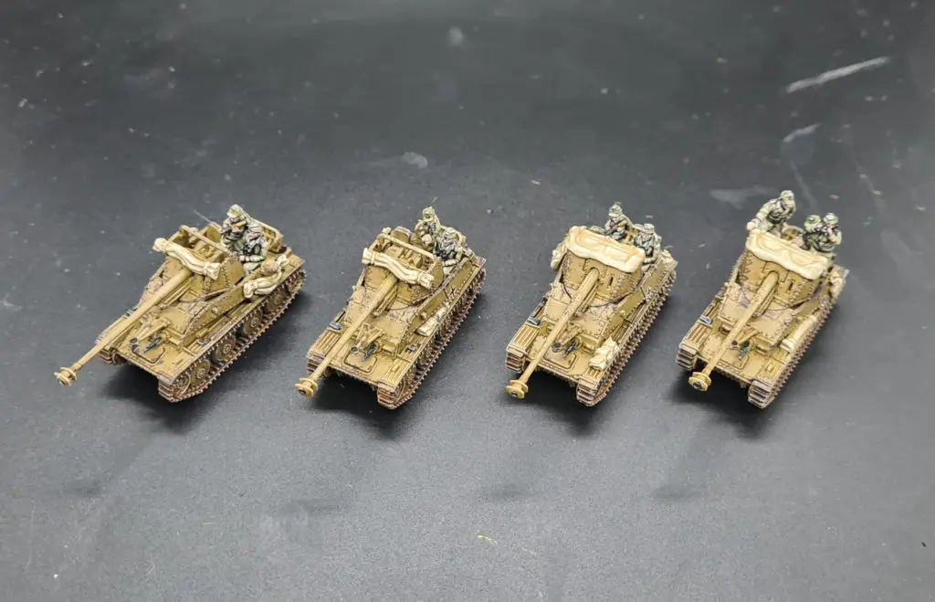 The PzIV provide both direct smoke and a decent bombardment. I debated captured 25pdr in place of the Marders but I need that high end anti-tank punch.