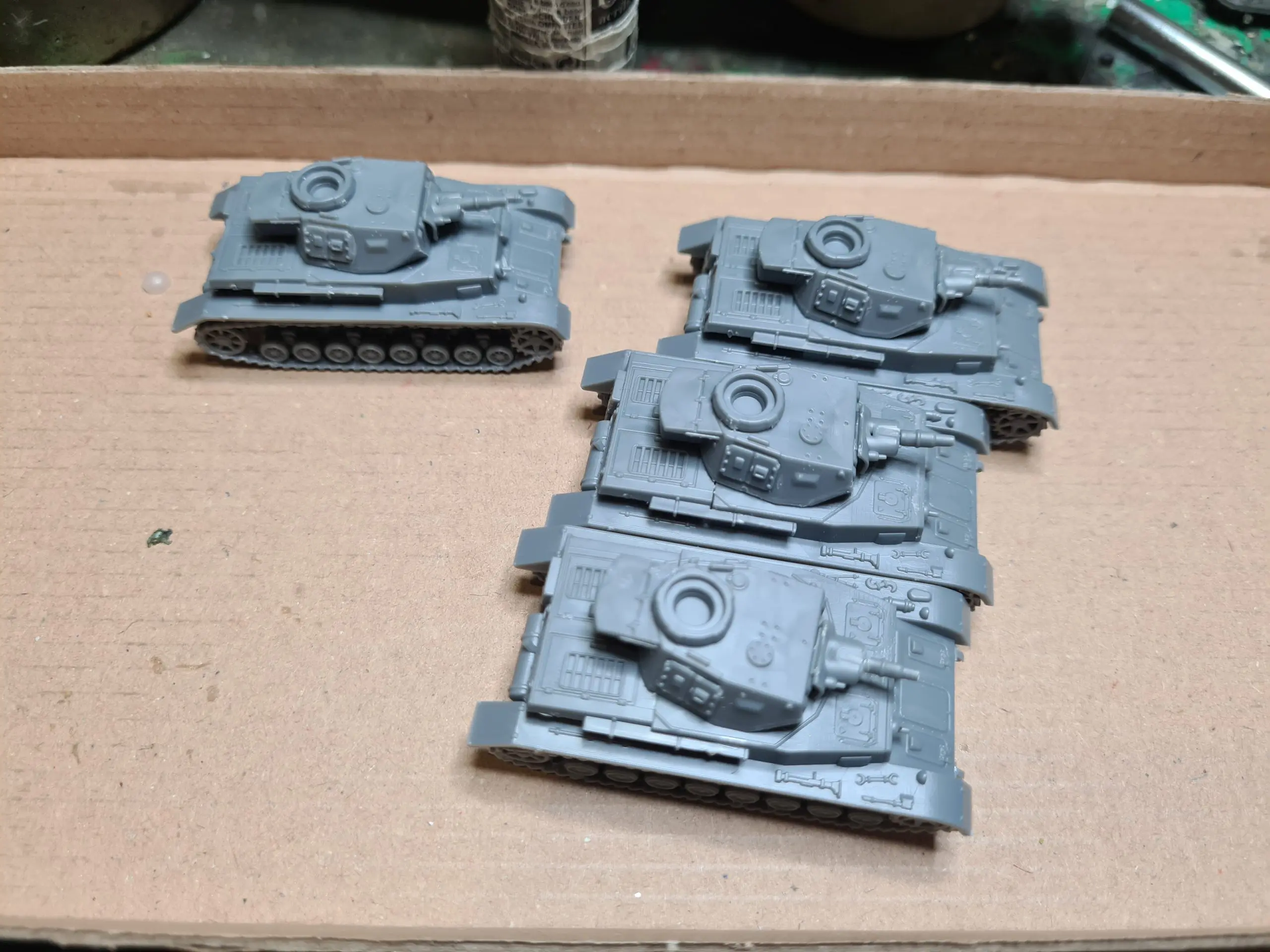 I made a start on finishing off the assembly of the Panzer III and IV models.  I had already partly assembled the PzIV models a while ago and just needed to fit the tracks, cupolas and gun barrels.  The PzIII were not as far along the production line but I got those all built but left the guns off so I could paint both short and long 5cm barrels.