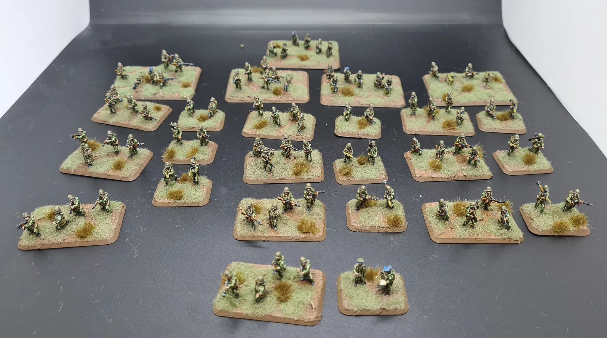 00:16:00 – Eddie has been traveling but has been making some progress thanks to “unexpected furlough”. He also bought some of the new Battlefront Paratroops.