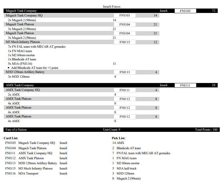 00:53:30 – The appearance of the Fate of a Nation (FoaN) lists on Forces requires us to celebrate in some way so we created some dream 100pt lists. We explain the rules.