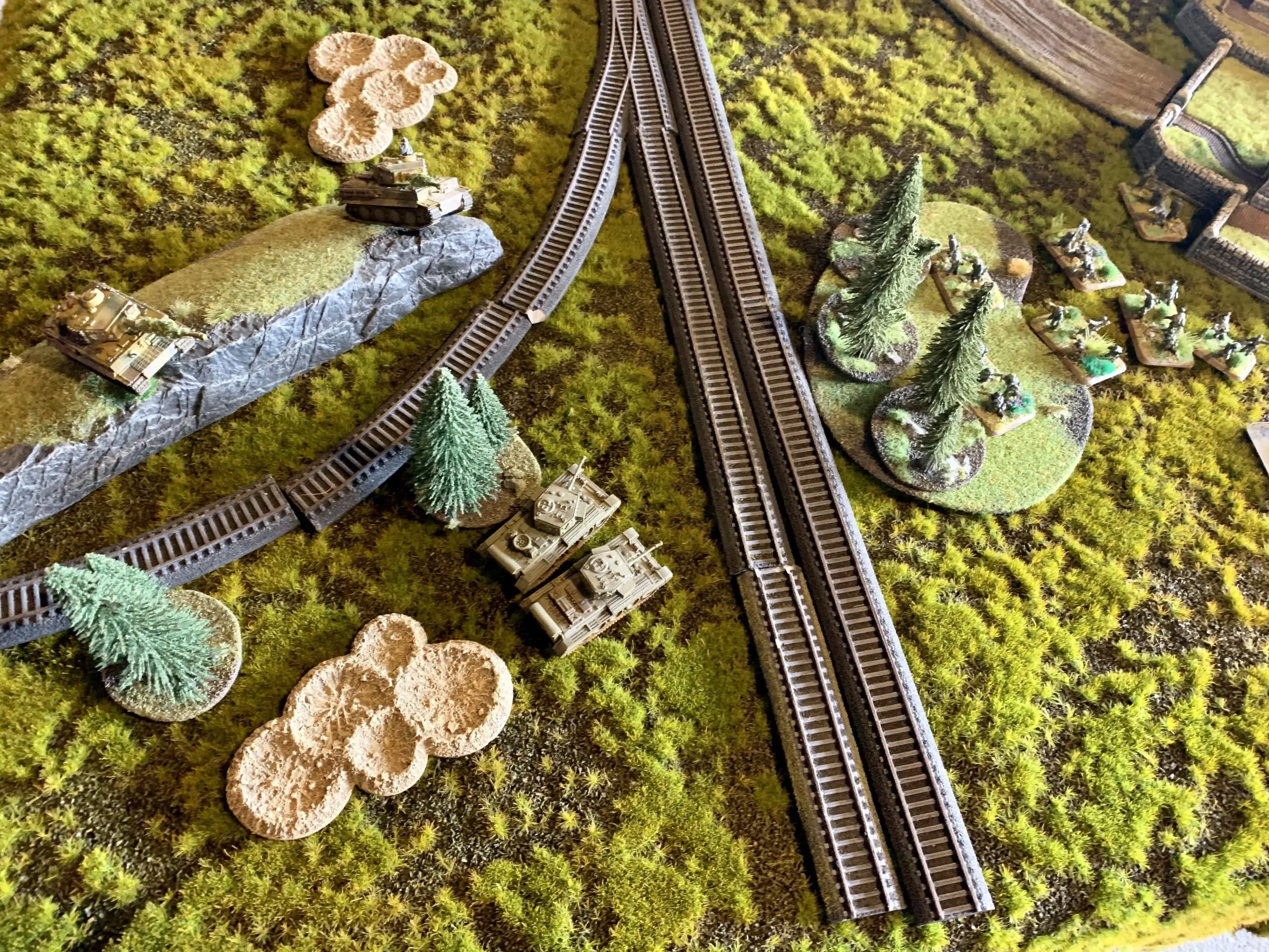 1. While it didn’t matter on this occasion the 3 points in the force for a 2+ follow me and counter-attack I think are worth it.  If you face infantry you can rollover most things but have a 50% chance of failing to counter leaving your small number tanks exposed for another turn.