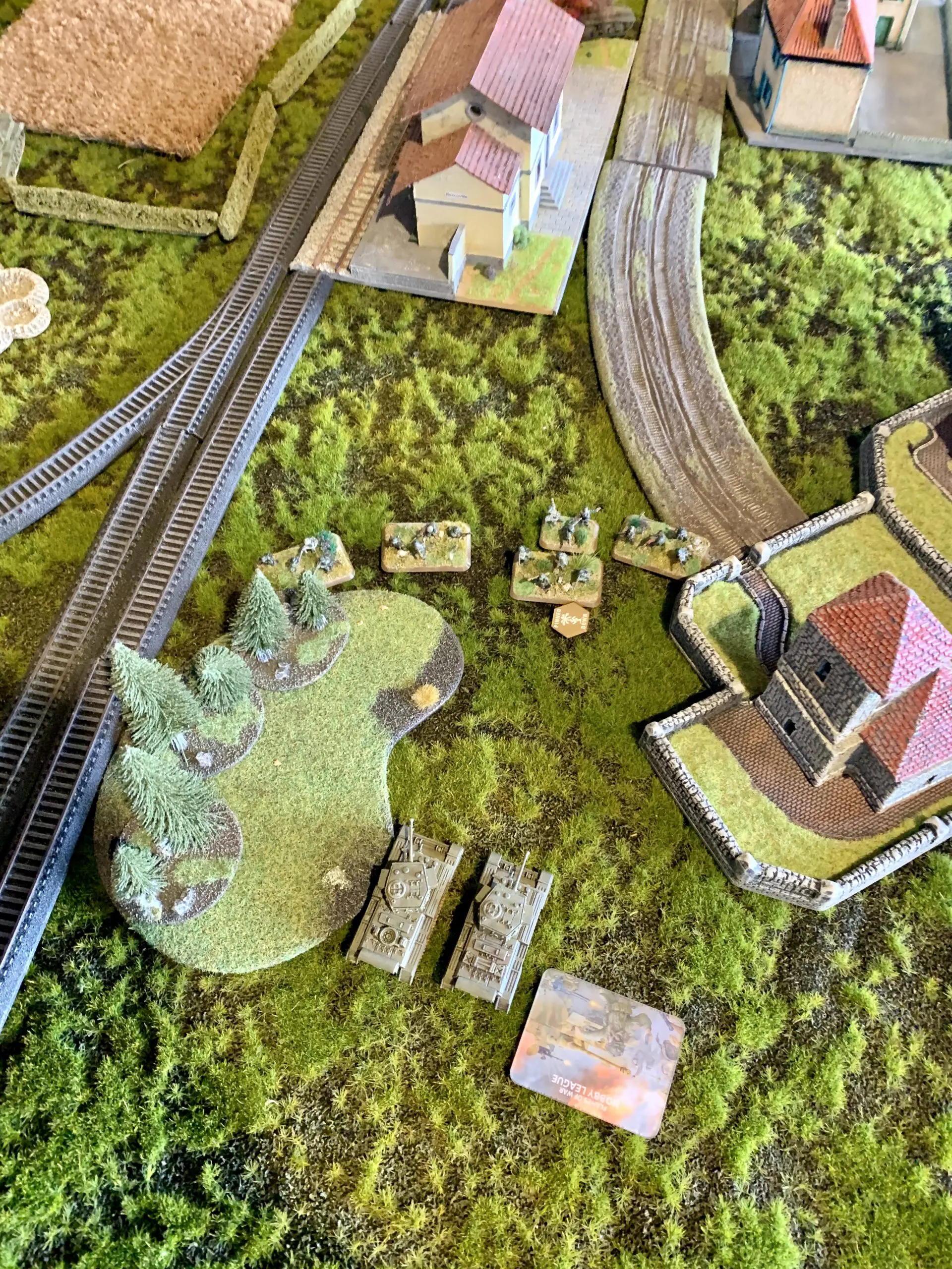 Anyway back to the list above.  The infantry is broadly the same all be it with a worse Assault and Last Stand.  But the key here is that you get HS129s.  6 shots at AT 7 hitting at worst on 4+ unless you are targeting something in wood.  After this game, we did some example rolls and in my Turn 1 and 3 would have had them come on.  From those dice rolls that Cromwell platoon would be toast and even if it less lucky at least pushing them to a Last Stand test meaning a 1/3 chance the game wouldn’t have ended.  Also, it gives something to reach out and touch those Achilles which are in literally every Brit army.  Stats wise you get 2 bails per run in and a kill is just gravy.  2 more Tigers also negates all that medium AT that would have been harnessing those PanzerIVs.