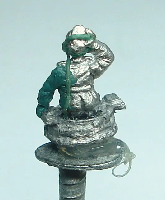 I was quite happy with the look of the figure but I figured he needed some extra detail to really make him look like a tank commander. Goggles, a headset and binoculars seemed appropriate. The goggle was created by starting with a couple